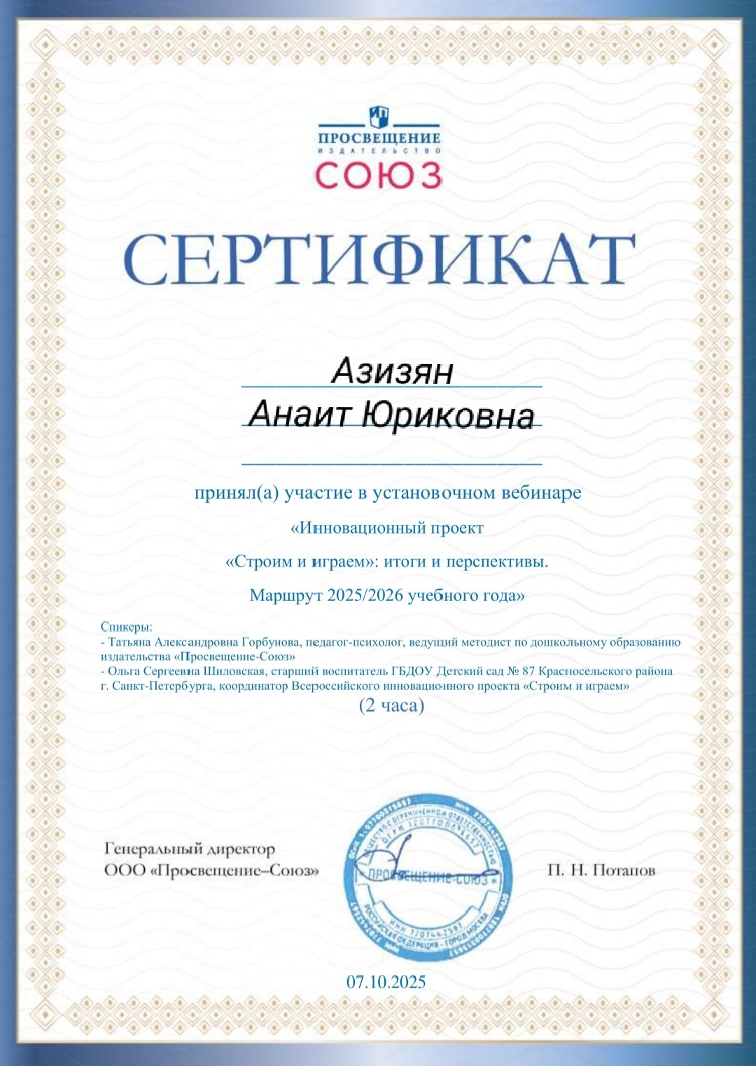 zoom_in Удостоверение о повышении квалификации по программе повышения квалификации "Психология: Способы психокоррекции и профилактики в условиях современного мира"